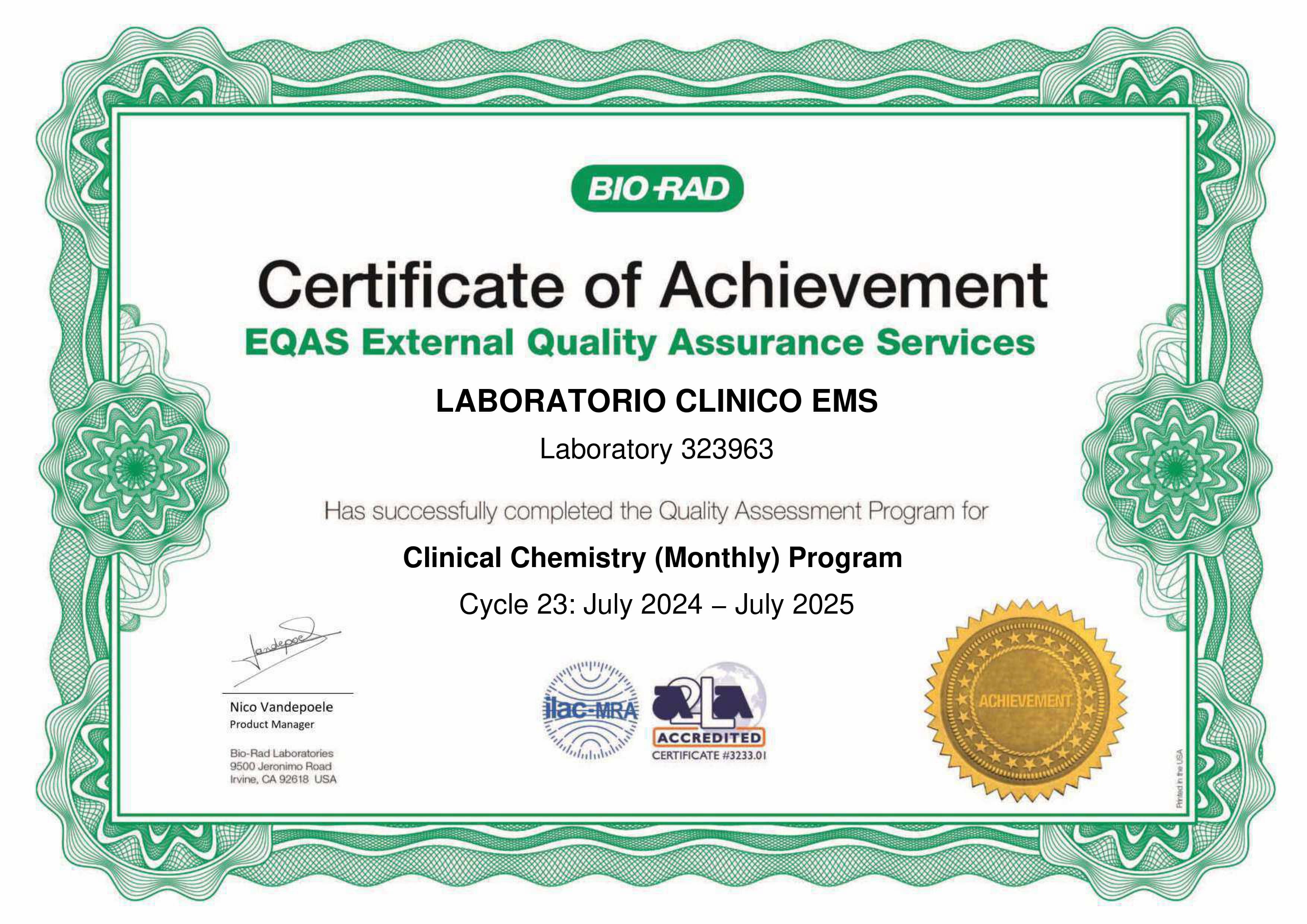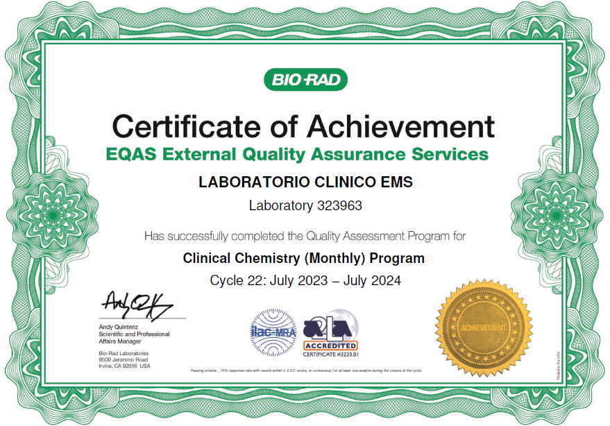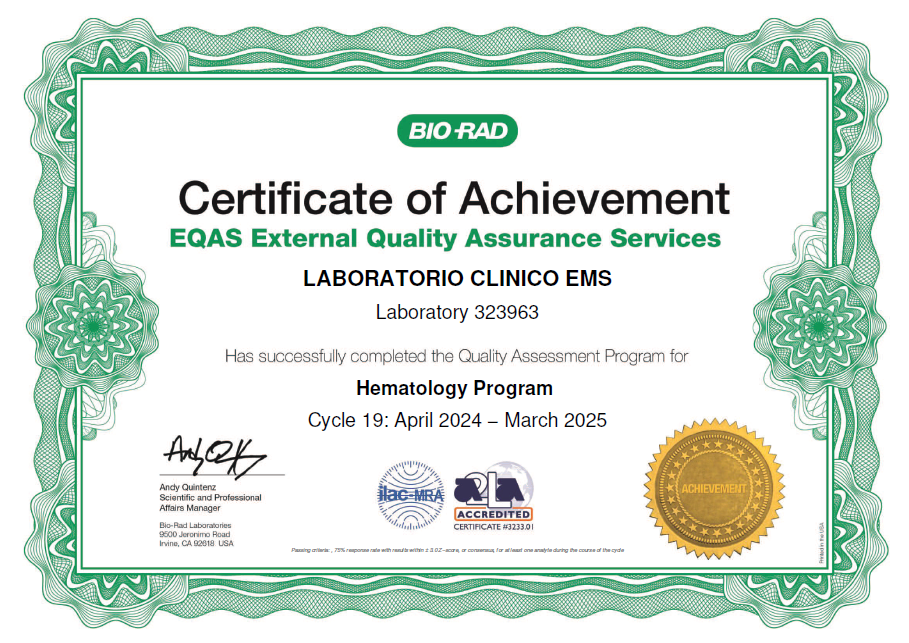 Nuestro Laboratorio Clínico está respaldado por certificaciones de alta calidad y cumple con los más rigurosos estándares, garantizando precisión, confiabilidad y excelencia en cada uno de nuestros servicios.